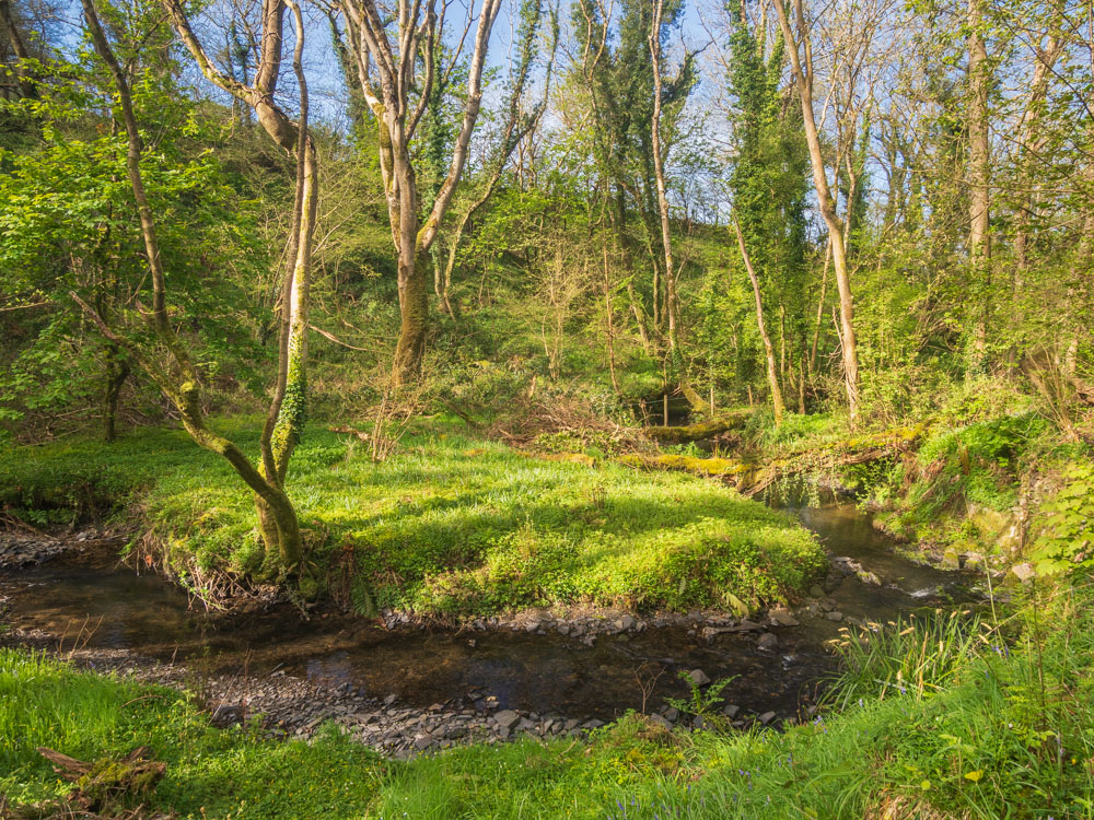 This is my favourite “sit spot” in Coed Tamsin. Bob has installed a bench here, and I believe has felled some trees/shrubs on the other side of the stream to enhance the view. I’ve been tempted to call him “Capability Shaw”! I’m full on with the project at the moment. Things change so fast in spring time. Blink and you miss it……….