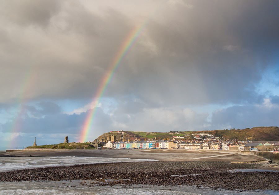 Take the above image, for example. It was taken at Aberystwyth on a recent afternoon, with the aim of producing a new postcard over the winter for next year. Rainbows don’t come along that often so I took over fifty shots over the period of about twenty minutes that it was intermittently visible. Back home it took me maybe an hour to do a preliminary sort of the images, select the best and process them to a rough and ready standard. Then there was maybe another hour the following morning to delete the dross and duplicates, and put the finishing touches to the above and a few others. To get from the unprocessed file (below) to the finished product (above) involved a total of 65 small or tiny adjustments. That might sound like a lot but each one takes only a second or two. It is said that the RAW file is the equivalent to the film negative and the fully processed image the resulting print. As long as the latter bears more than a passing resemblance to the former, I’m happy.