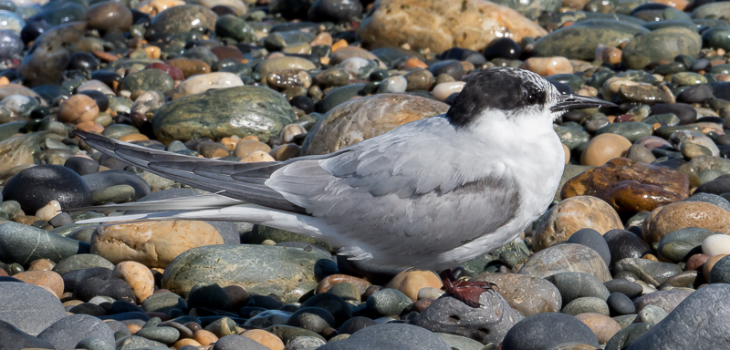 One of my favourite places in Wales is Cemlyn Bay, on the north coast of Anglesey. It is a brackish lagoon separated from the sea by a curving shingle spit. Within the lagoon are a couple of islands on which very large numbers of terns raise their young every year. Commonest is the sandwich tern, with large numbers of common and arctic terns as well; it has held roseate terns in the past and occasional birds are seen every year, although they do not now breed.