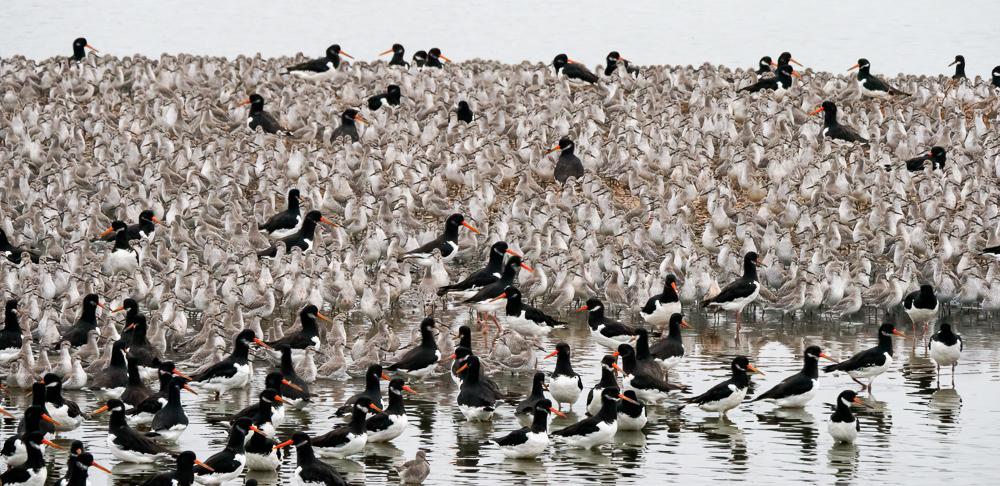 By about eight o’clock the intensity of the action had begun to wane and I regained my sense of composure. Over a period of half an hour an atmosphere of gentle tranquility quickly turned into one of frantic hyperactivity and back as the knot flocks flew in and gradually settled down to roost. And that was just how I felt!
