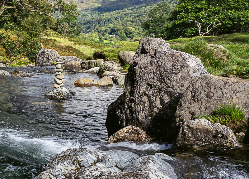 That was almost it for the day, really. I’ve often wondered what other landscape photographers do during the main part of a summer day. So many are only active during the “golden hour” around dawn and dusk. How do they wile away the many hours with the sun high in the sky? Apart from catching up on sleep, that is….. . During the afternoon I walked up the lower section of the Watkin Path into Cwm Llan. It was more of a recce really, but I did come across a charming little “Andy Goldsworthy” style sculpture. Unlike a Goldsworthy, I suspect this one will have involved quantities of industrial strength adhesive to maintain it’s structure. Otherwise the walk was mainly an exercise in avoiding families with noisy children!