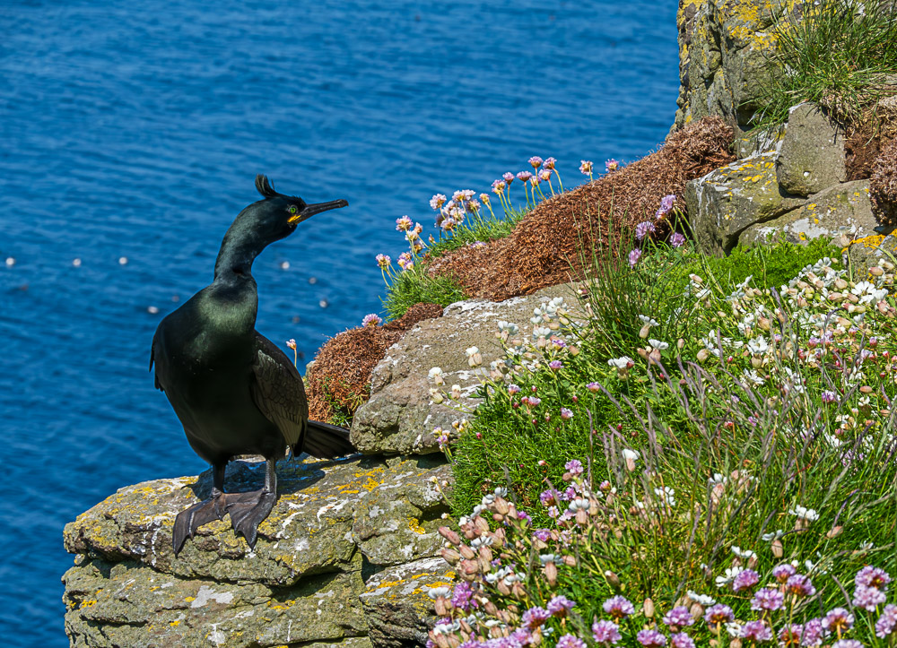 Reluctantly dragging myself away I soon came to the end of the main path close to an auk colony. While the huge majority of the birds were on the far side of a precipice that didn’t stop individuals landing this side of it close to me and the other human visitors. I’ve never been in close proximity to a shag before but one landed nearby and stayed, allowing me to photograph it at length. One young woman was sitting on a rock outcrop and a razorbill landed next to her as if she wasn’t there. It was astonishing! I reflected on how easy it would have been for the early sailors to plunder these seabird islands for food as they explored the oceans. And no wonder the great auk became extinct – it didn’t even have the advantage of flight.