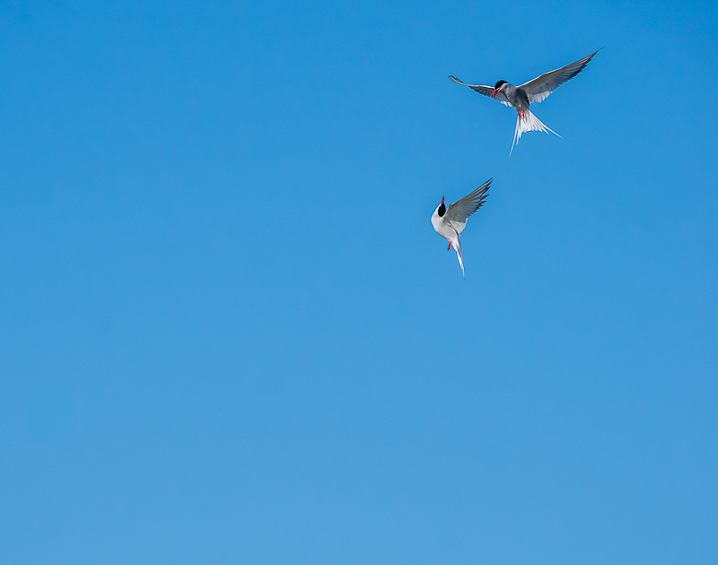 This photo was taken at Cemlyn Bay, Anglesey, during my annual visit to the tern colony there this year. I’ve always had difficulties separating arctic and common terns, and I’m going to have to come clean…. I don’t know if these are one or the other! What appear to be long red bills suggest common, but the lack of black tips suggest arctics. If anyone can put out of my identification misery, please let me know!