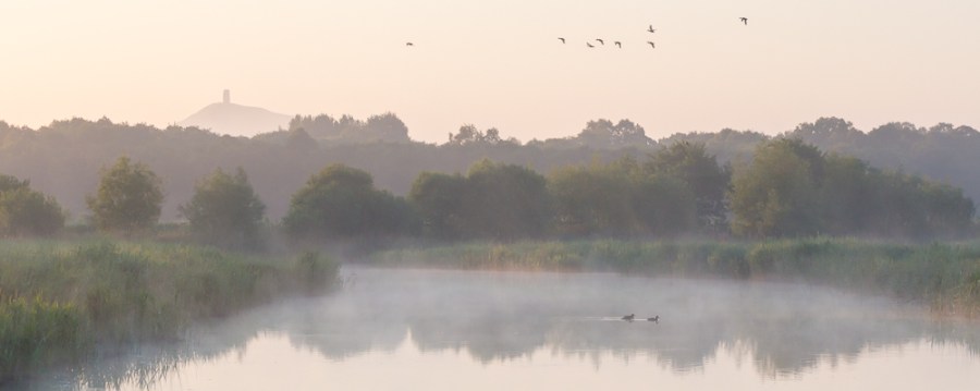 In a previous post I wrote about a trip to the Somerset Levels in winter, where I photographed starlings and great white egrets. Earlier this week I spent a couple of days around Ham Wall and what a great place it is! My internal clock woke me about 4 a.m on the first morning and from the van I could see wisps of low fog in the air. I wasted no time (well, maybe a little….) in getting myself up and on to the reserve. It was a gorgeous, atmospheric morning, with misty conditions throughout; the iconic shape of Glastonbury Tor, with its tower, was often visible, and this was my first photographic objective (see above). It was soon sunrise and birds were leaving roost sites and moving to feeding areas in the marshes. I tried to include over-flying birds in these early morning landscapes even if they were quite small in the viewfinder. It was particularly noticeable how many great white egrets there were, and I saw several greater bitterns in flight. Despite being extraordinary birds in themselves I can’t get too excited about the appearance of the latter in flight, while the former are delightful.