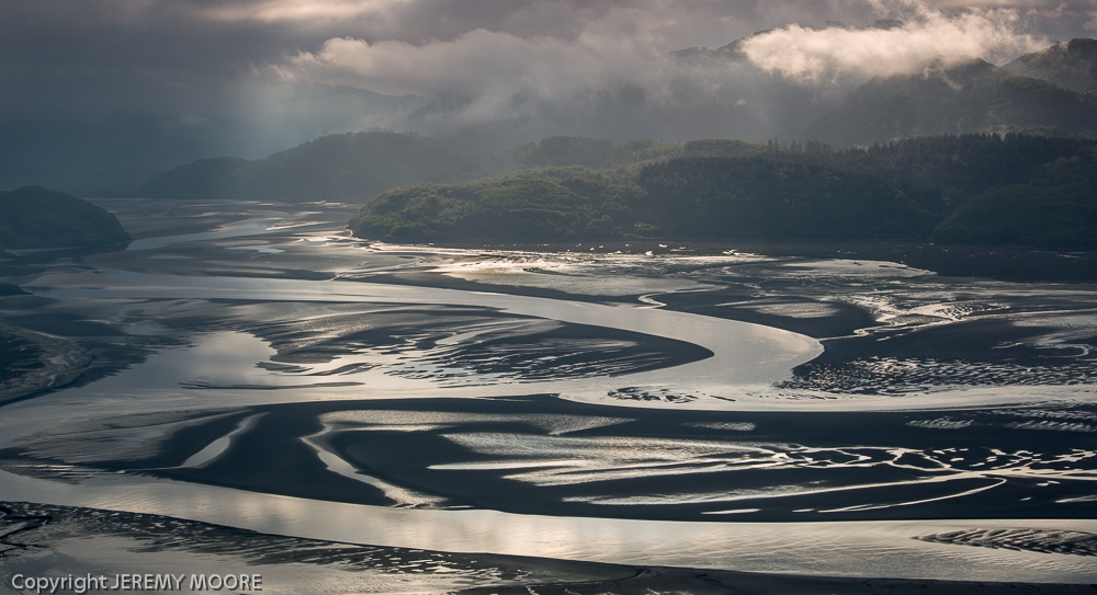 The cloud was very slowly drifting downstream above the estuary and lifting. Would the sun ever break through to light up the landscape? I felt sure that all over Snowdonia photographers were making amazing images but that here it was no-go time. At last, at 7 a.m., a few gaps appeared and a dramatic scene was revealed (see top picture). Although the clearance lasted only a couple of minutes it had been worth getting up so early.