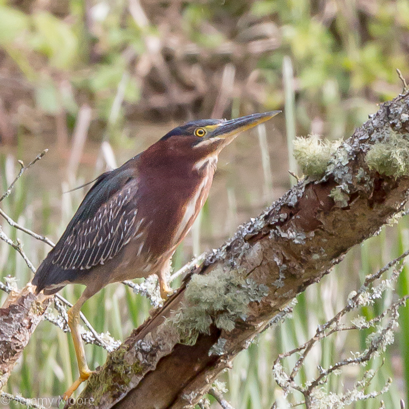 Earlier this week I headed down to Kidwelly near Carmarthen. Having arrived there I checked the Pembs Bird Blog – as I regularly do – to find that a green heron had been found near Narberth, only about 25 miles away. This is an exceptionally rare vagrant from north and central America to the British Isles, and a visit was a no-brainer, really. I restrained myself for several hours the following morning, photographing migrating whimbrel which had been pushed high on to the saltmarsh by a spring tide. But after a second breakfast I headed over to Pembrokeshire. Full directions to the site were given on the Bird Blog; it was in the grounds of the local M.P.’s house who very generously, really, had opened up his garden to the possibly hundreds of complete strangers who might want to see the bird.