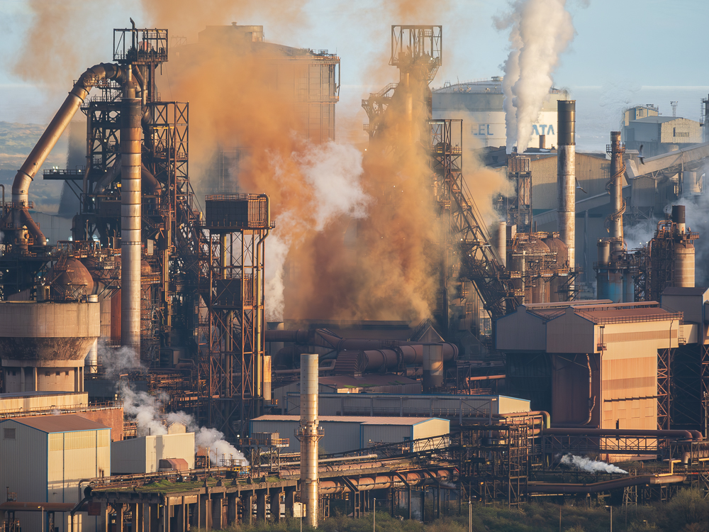 It was late afternoon by now and I could see a slot in the clouds close to the horizon in the western sky. It looked like I might get some golden hour light on the works if I was patient. I returned to my original viewpoint, and the sun crept slowly towards the slot. When it did finally emerge the steel complex was bathed in golden light. Right on cue a thick cloud of orange-brown smoke belched out from the centre of the complex and dissipated into the air above it. It was an exciting moment but………..
